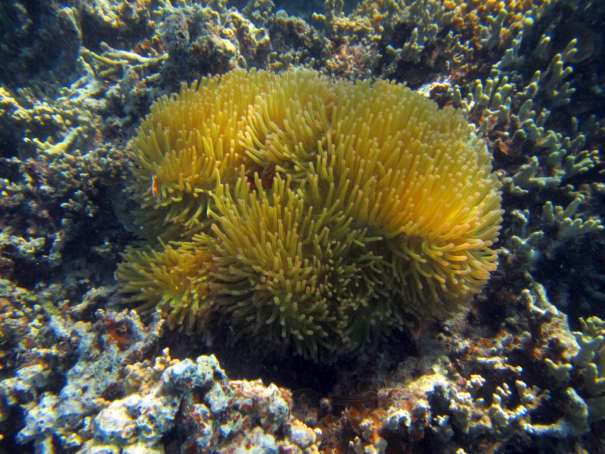 After a couple of false starts we found a nice reef to snorkel on. The challenge is that the water is deep – 50-60 feet around most of the cove, except in close to the reef patches where the water shallows out. Sometimes it gets too shallow, and we didn’t want to anchor the dinghy someplace then come back to find it sitting high and dry on the reefs if the wind changed.