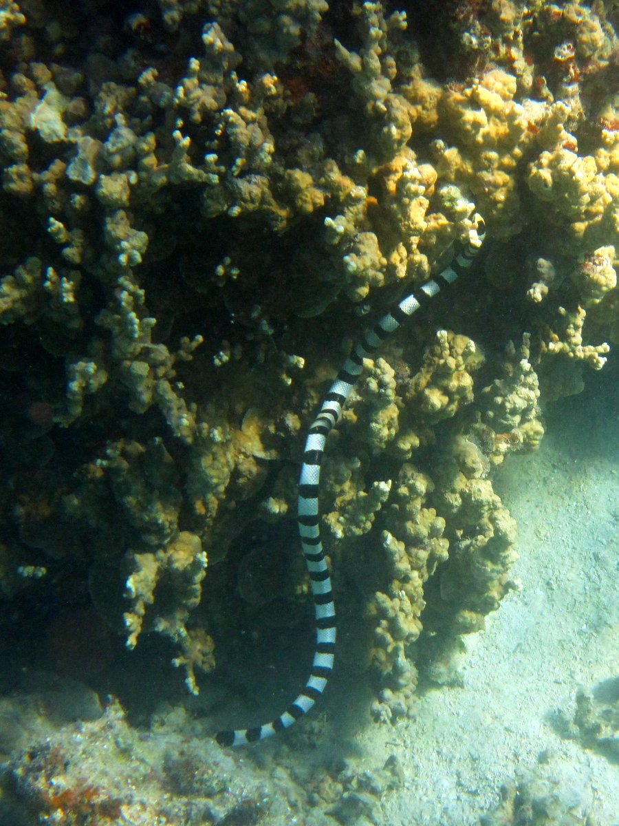 Snorkeling was a success. The huge and complex coral structures were a delight to see. The fish life was varied and plentiful, though we didn’t see any really big fish or sharks there were hundreds and hundreds of colorful reef fish all around. The highlight was a brightly colored Banded Sea Snake that Danielle spotted as we were almost done for the day. Although these are some of the most venomous snakes in the world they do not have a reputation for being aggressive, and are considered quite docile. We kept our distance and took pictures.